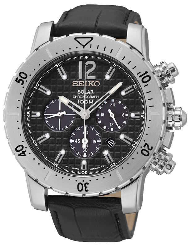 Seiko Solar Chronograph SSC223P2 mustalla kellotaululla ja nahkarannekkeella nyt erikoishintaan. Kellossa ominaisuuksina ajanotto sekä päivyri. Seikon Solar-kellojen kvartsikoneistot saavat virtansa tehokkaasti energiaa tuottavista aurinkokennoista. Solar-kellot latautuvat nopeasti kaikesta valosta, ei ainoastaan auringonvalosta ja täten pariston vaihtoja ei tarvita. Kellon rungon leveys 44,7 mm. Laadukkaille Seiko kelloille myönnetään 2 vuoden takuu ja ne toimitetaan valmistajan alkuperäisessä rasiassa.