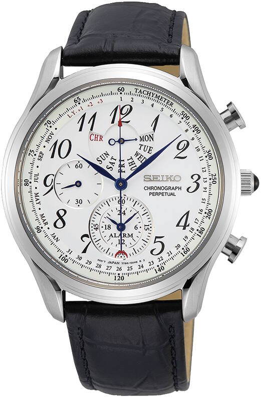 Seiko SPC253P1 Perpetual Chronograph -kellossa on valkoinen kellotaulu ja musta nahkaranneke. Kellossa on käytännölliset ominaisuudet: ajanotto, päivyri, herätys sekä perpetual kalenteri. Kellotaulun ulkoreunaa kiertää lisäksi takometriasteikko. Kellon rungon leveys on 40,6mm. Kellotaulua suojaa lähes naarmuuntumaton safiirilasi. Seiko kelloille myönnetään 2 vuoden takuu ja ne toimitetaan valmistajan alkuperäisessä rasiassa.