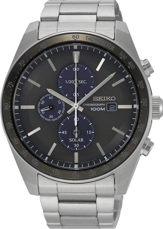 Seiko SSC715P1 Solar Chronograph pitää sinut perillä ajasta. Kello saa käyntivoimansa valosta, jota laitteen tehokkaat aurinkokennot varastoivat kellon akkuun. Pimeän tullen näet myös yhä kellonajan, kiitos SSC715P1:n luminoituvien viisarien ansiosta. Kellotaulusta löytyvät lisäksi päivyri sekä 1/20 sekunnin tarkkuudella toimiva, 60 min asti yltävä sekuntikello.