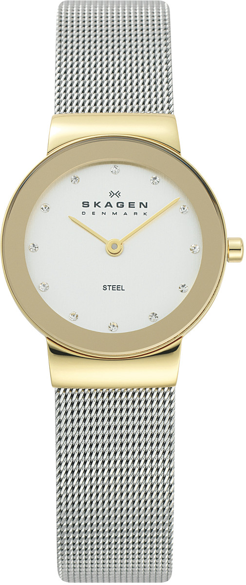 Tämän naisten Skagen Freja-kellon tuotenumero on 358SGSCD. Rungon leveys 26mm ja rannekkeen leveys 14mm. Runko ja ranneke ovat ruostumatonta terästä. Runko on kullan värinen ja ranneke hopean värinen. Kellosta tekee tyylikkään tauluun upotetut koristekivet. Laadukkaiden materiaalien myötä Skagen kelloille myönnetään 2 vuoden takuu. Takuu korvaa valmistus- ja materiaaliviat. Kellot toimitetaan valmistajan alkuperäisessä rasiassa.
