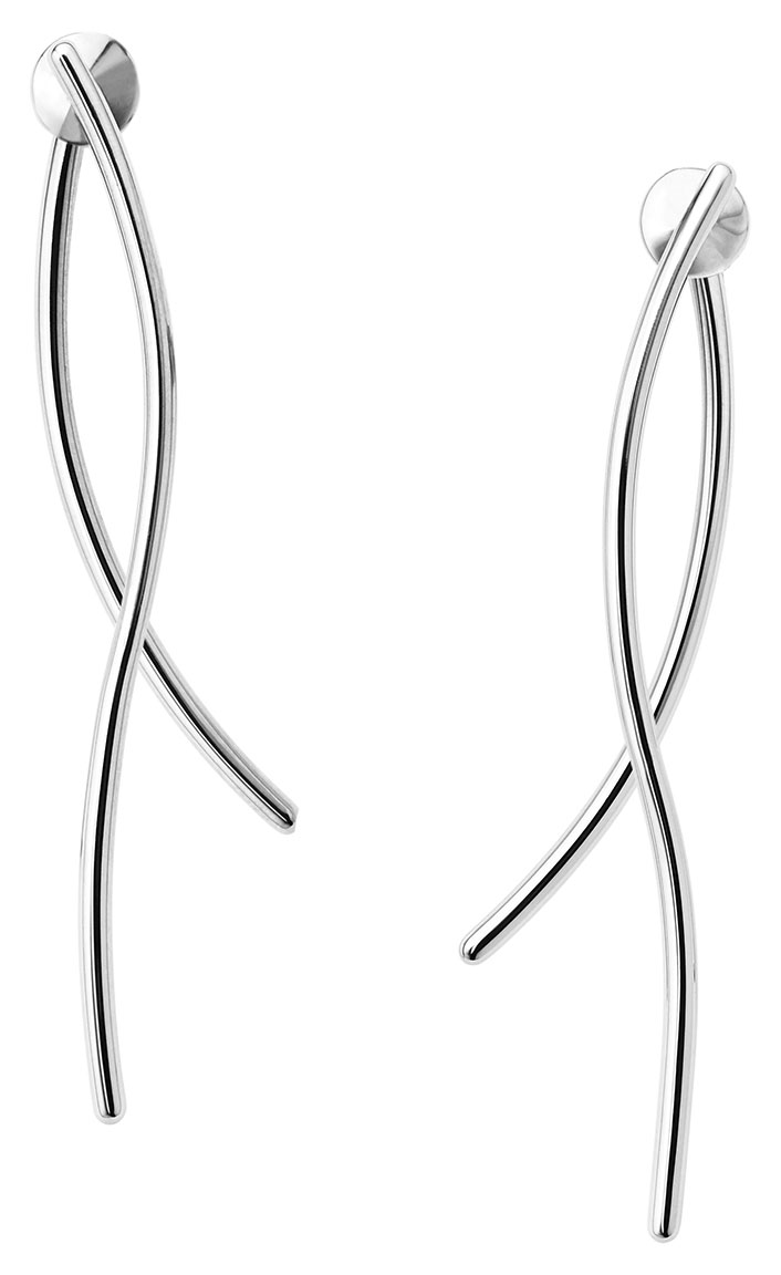Skagen Kariana Silver-Tone Wire Earrings SKJ1123040 ovat kauniin elegantit naisten korvakorut. Hopeanvärisestä ruostumattomasta teräksestä valmistetussa korvakorussa on kaksi pitkää kurvikasta osaa, joista toinen tulee korvalehden päälle ja toinen alle. Korvakorun pituus on 48,1 mm. Skagen-korut toimitetaan valmistajan alkuperäisessä pakkauksessa.