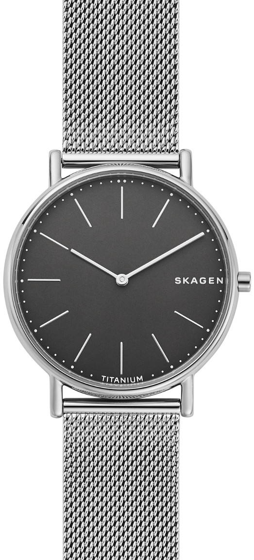 Skagen Signatur Slim SKW6483 on uskomattoman ohut rannekello. 40 mm leveä ja ainoastaan 5,3 mm paksu runko uhmaa fysiikan lakeja ja on titaanista valmistettuna myös äärimmäisen kevyt. Hiekkapuhallettu harmaa kellotaulu on tyylikkään yksinkertainen. Teräksisen rannekkeen leveys on 20 mm.