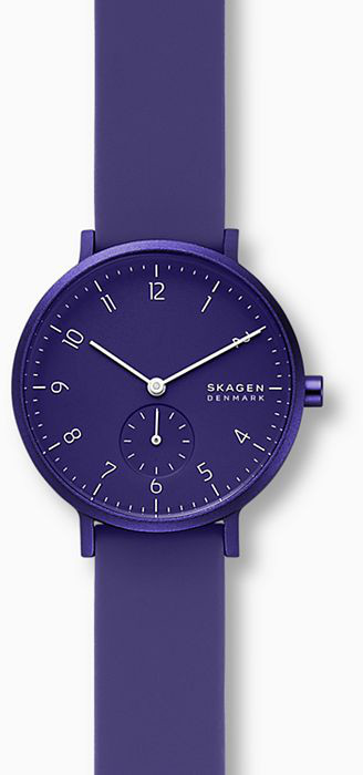 Skagen SKW2802 Aaren Kulor Purple on saanut inspiraationsa Kööpenhaminan Nyhavnin korttelin kirkkaista taloista ja energisestä elämästä. Täysin violetinsävyisessä kellossa on silikoniranneke ja kevyt 36 mm:iä leveä runko. Rungon paksuus 8 mm . Rannekkeen leveys kiinnityskohdasta on 16 mm ja se on varustettu pikajousinastalla, jotta vaihtaminen olisi mahdollisimman helppoa.
