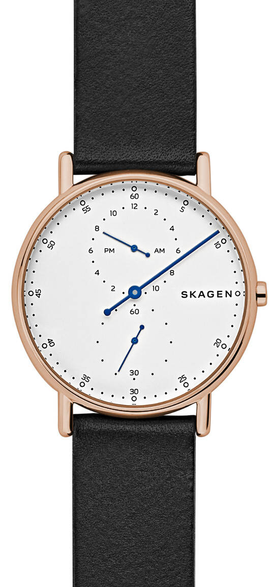 Skagen SKW6390 Signatur Regulator -kello on tanskalaista designia ja juuri sinulle, joka kaipaat ajannäyttöön hieman uutta aspektia. Kellosta tekee uniikin se että jokaiselle ajannäyttäjälle on varattu erikseen oma osoittimensa kellotaulusta. Kellon punakultainen runko on valmistettu ruostumattomasta teräksestä ja ranneke on aitoa nahkaa. Kellon rungon leveys on 39.8mm ja paksuus 8.5mm. Rannekkeen leveys kiinnityskohdasta on 20mm. Skagen -kelloille myönnetään 2 vuoden takuu ja ne toimitetaan valmistajan alkuperäisessä rasiassa. Voimme kaivertaa veloituksetta kellon takakanteen esimerkiksi nimikirjaimet ja päivämäärän (maksimissaan 20 merkkiä). Valitse ensin kaiverrus ja kaiverruksessa käytettävä tekstityyli ja kirjoita kaiverrettavat tiedot "kaiverrettava teksti" -kenttään. Huom! Kaiverretuilla tuotteilla ei ole palautusoikeutta!