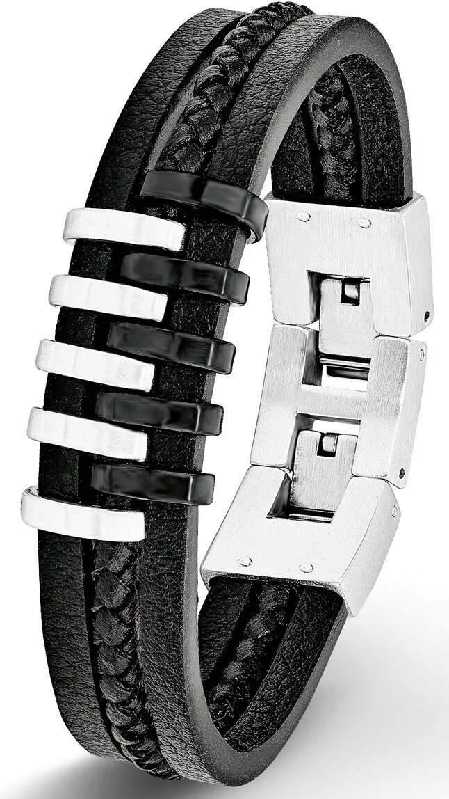 Miesten s.Oliverin 9025510 rannekorussa on käytetty mustaa nahkaa ja ruostumatonta terästä. Tämä tyylikäs rannekoru koostuu kolmesta remmistä, jotka ovat kiinnitetty keskeltä teräksisillä kiinnikkeillä. Koru on pituudeltaan 20cm ja mukana on 2cm jatkopala. s.Oliver-korut toimitetaan valmistajan alkuperäisessä lahjarasiassa.