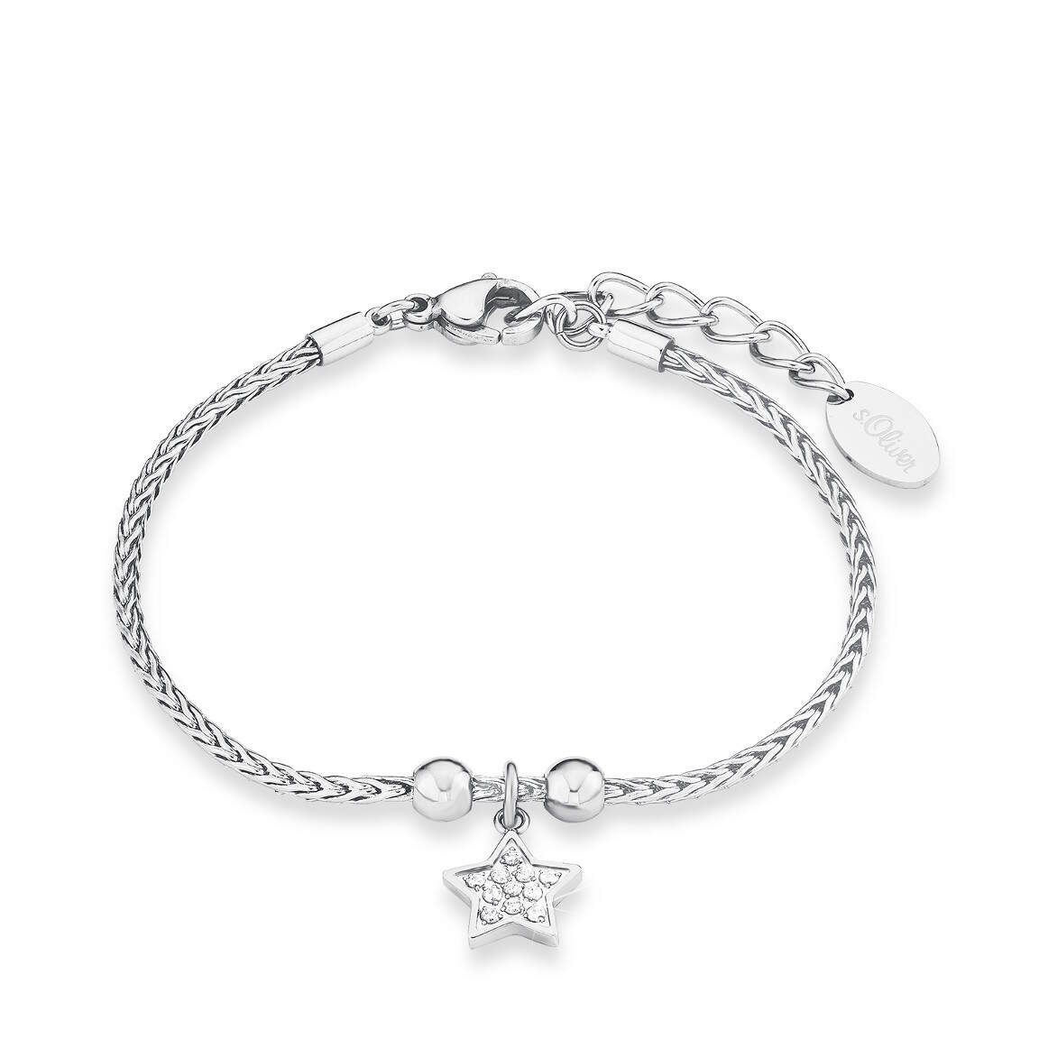 S.Oliver 9240456 rannekorun pituus on pisimmillään 20cm, mutta pituutta saa säädettyä lyhyemmäksi lukkoa siirtämällä. Ketju muistuttaa vaijeria, mikä tekee korusta ryhdikkään näköisen kokonaisuuden. Korussa riippuu kaunis tähtiriipus, johon on istutettu kirkkaita zirkoneja, tuomaan säihkettä. Tuote toimitetaan S.Oliverin alkuperäisessä rasiassa!