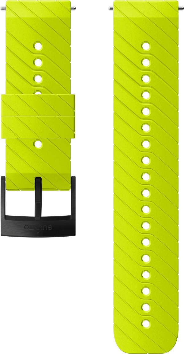 Suunto 24mm Athletic 3 Lime -silikoniranneke SS050157000 on valmistettu laadukkaasta silikonista. Ranneke on suunniteltu aktiiviseen harjoitteluun. Kaikki suunnon silikonirannekkeet istuvat mukavasti käteen ja niitä on helppo pitää puhtaana. Rannekkeet ovat kestäviä ja ne sopivat hyvin myös rankkoihin lajeihin sekä uintiin. Suunto 24mm Athletic 3 Lime -silikonirannekkeessa on limen värinen silikoniosa ja musta solki. Kiinnittäminen kelloon tapahtuu helposti pikajousinastan ansiosta. Vaihtoon ei siis tarvita työkaluja. Rannekkeen leveys on 24mm ja paino 25 grammaa. Ranneke sopii ranteeseen, jonka ympärysmitta on välillä 130mm-220mm. Ranneke on yhteensopiva Suunto Spartan Sport, Suunto Spartan Sport Wrist HR, Sport Wrist HR Baro, Suunto 7 ja Suunto 9 kellojen kanssa. Ranneke on suunniteltu näihin kelloihin mutta sopii myös muihin kelloihin, joissa rannekkeen leveys kiinnityskohdasta on 24mm.