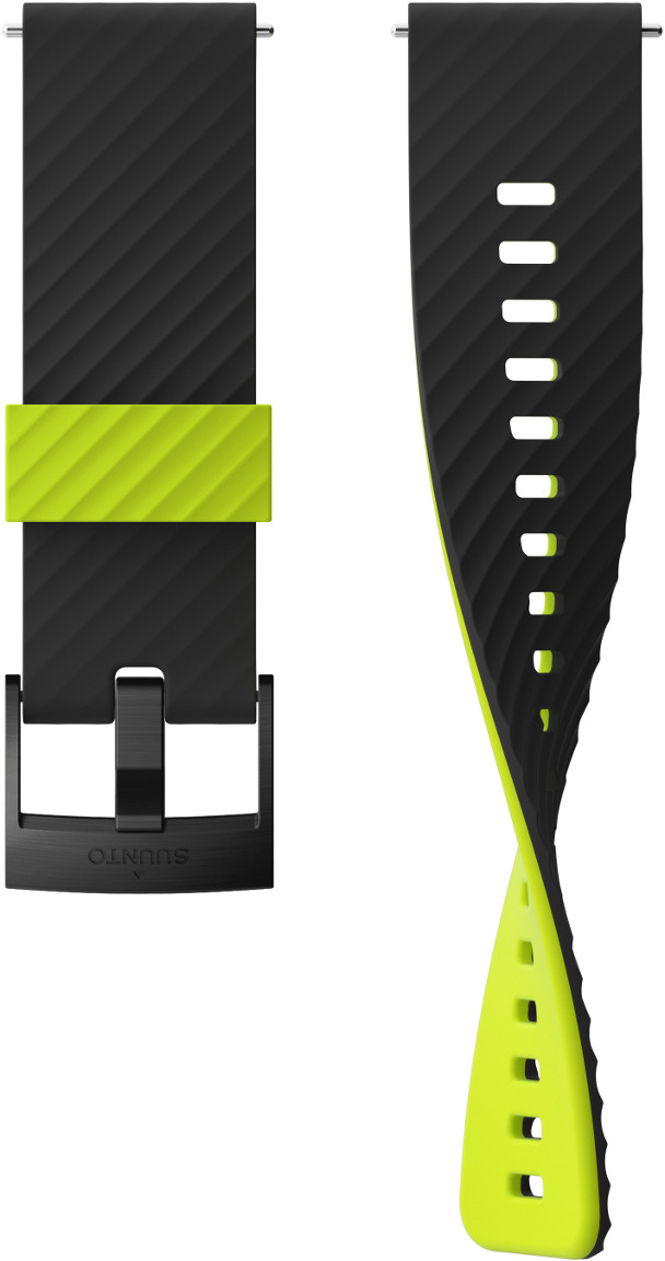 Suunto 24mm Urban 3 Black Lime silikoniranneke SS050545000 on valmistettu laadukkaasta silikonista. Ranneke on suunniteltu ulkolajeihin, harjoitteluun sekä arkikäyttöön. Kaikki suunnon silikonirannekkeet istuvat mukavasti käteen ja niitä on helppo pitää puhtaana. Rannekkeet ovat kestäviä ja ne sopivat hyvin myös rankkoihin lajeihin sekä uintiin. Suunto 24mm Urban 3 Black Limesilikonirannekkeessa on musta silikoniosa, limen vihreä lenkki ja musta solki. Kiinnittäminen kelloon tapahtuu helposti pikajousinastan ansiosta. Vaihtoon ei siis tarvita työkaluja. Rannekkeen leveys on 24mm. Ranneke sopii ranteeseen, jonka ympärysmitta on välillä 130mm-230mm. Ranneke on yhteensopiva Suunto Spartan Sport, Suunto Spartan Sport Wrist HR, Sport Wrist HR Baro, Suunto 7 ja Suunto 9 kellojen kanssa. Ranneke on suunniteltu näihin kelloihin mutta sopii myös muihin kelloihin, joissa rannekkeen leveys kiinnityskohdasta on 24mm.