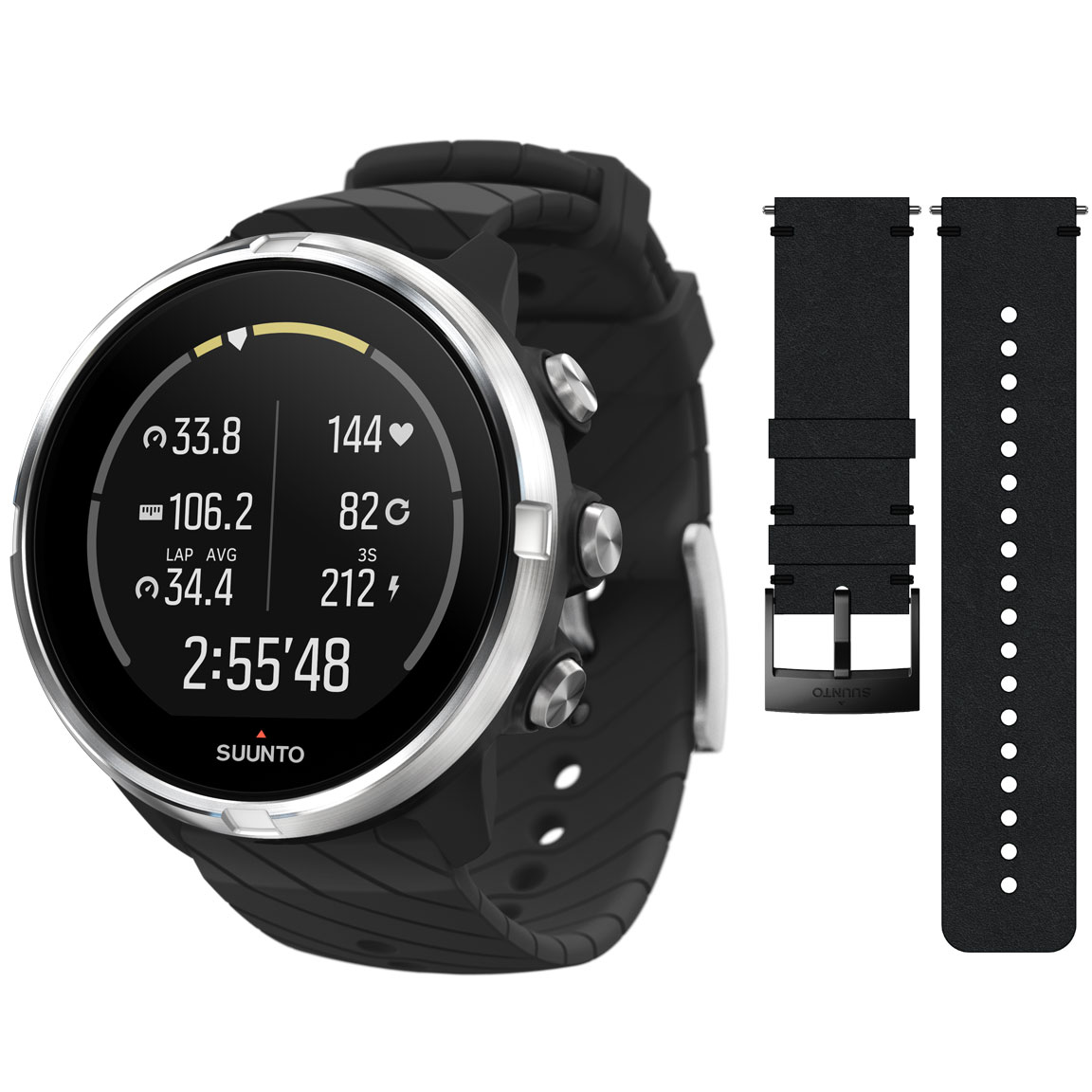 Suunto 9 Black + leather strap -sykemittari ranteessasi vain taivas on rajana. Tässä paketissa toimitetaan laitteen lisäksi yhteensopiva Suunnon musta nahkaranneke. Paketti tarjolla nyt erikoishintaan! Laitteen ennennäkemätön akunkesto takaa, että hyökätessäsi vielä yhden ylimääräisen mäennyppylän kimppuun jaksaa sykemittarisi myös puskea eteenpäin entistä kovemmin. 80 urheilutilaa, Valencell-rannesykemittaus, GPS- ja Glonass-reittinavigointi, auringonnousu- ja laskuajat sekä monet muut huippuominaisuudet tekevät tästä paketista vastustamattoman niin urheilijoille, ulkonaliikkujille kuin kovimmille seikkailijoillekin. Huom! Tähän pakkaukseen ei sisälly sykevyötä.