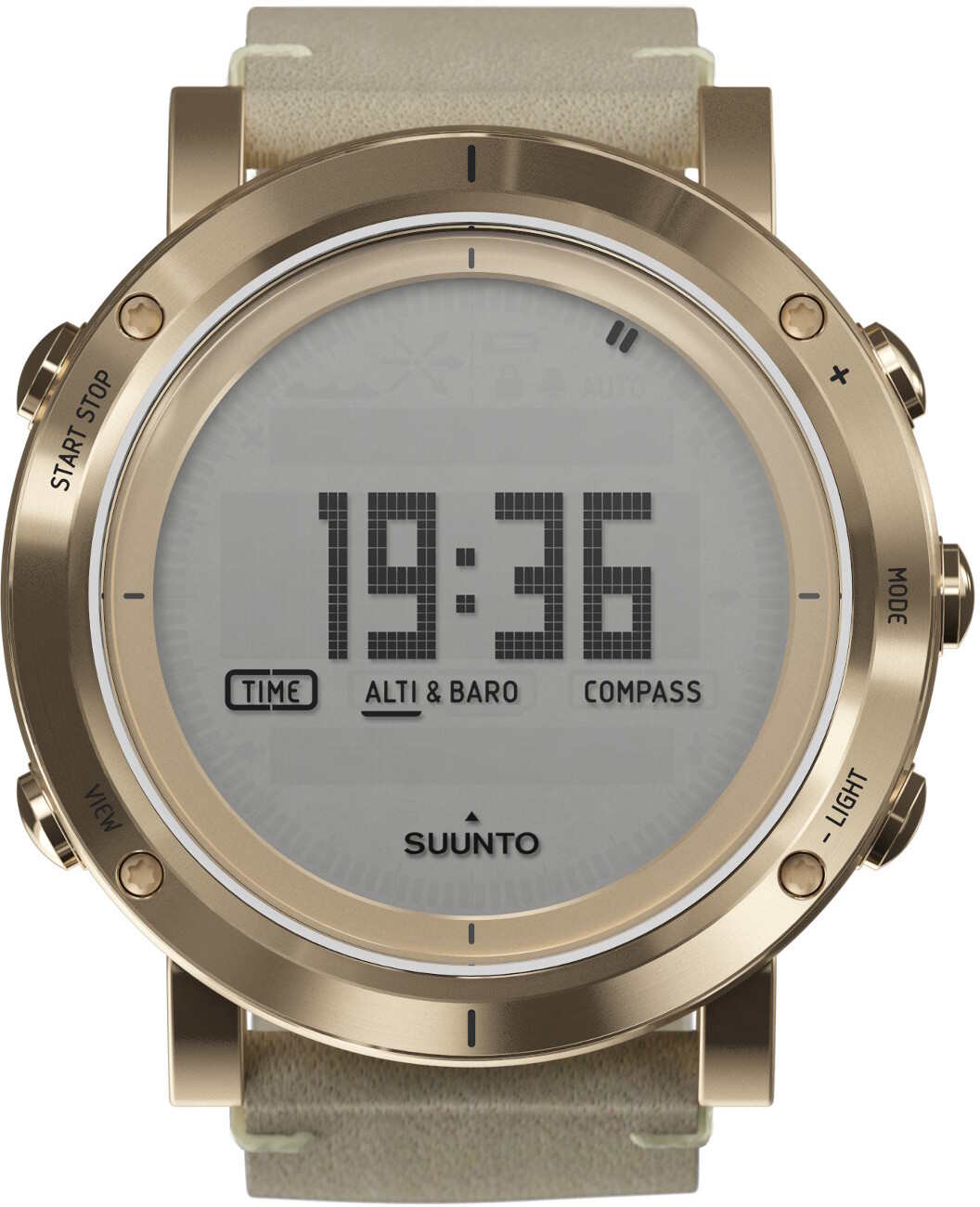 Suunto Essential Gold -kellon rungon sisään kätkeytyy digitaalinen kompassi, lämpömittari, syvyysmittari sekä barometri, joka mittaa ilmanpaineen lisäksi myös korkeutta (barometrinen altimetri). Tarkkailemalla ilmanpainetta voit ennustaa sääolosuhteiden äkillisiä muutoksia ja reagoida niihin tarvittaessa nopeallakin aikataululla. Lisäksi voit asettaa kelloon myrskyvaroituksen. Barometrisellä altimetrillä voit mitata korkeuttasi merenpinnasta ja seurata nousujasi ja laskujasi hyvin kätevästi. Kelloon on ohjelmoitu myös auringon nousu- ja laskuajat. Suunto Essential –rannekellot soveltuvat siis täydellisesti esimerkiksi vuorikiipeilijöille, laskettelijoille ja eränkävijöille. Ennen kaikkea Essential –kellot ovat kuitenkin lifestyle-tuotteita, jotka sopivat yhtä lailla kaikille korkeaa laatua ja suomalaista designia arvostaville.