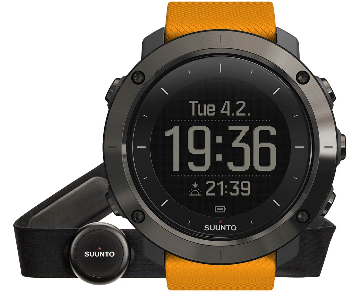 Suunto Traverse Amber on Suunnon syksyllä 2015 julkaisema uutuus, joka soveltuu retkeilyyn, patikointiin ja muuhun ulkoiluun. Se on helppokäyttöinen rannetietokone monipuolisilla navigointitoiminnoilla. Tilaamalla tämän tuotepaketin, saat Suunto Traverse -laitteeseen myös tarkat syketiedot. Tämä tuotepaketti sisältää siis kaksi erillistä tuotetta, Suunto Traverse Amber -rannetietokoneen (ovh 400€) ja Suunto Smart Sensor -sykevyön (ovh 80€). Huomioithan, että Suunto ei valmista Suunto Traverse Amber HR pakettia ollenkaan, vaan toimitamme tuotteet erillisinä. Näin ollen sykevyö pitää itse parittaa rannetietokoneeseen. Onneksi laitteiden parittaminen käy käden käänteessä ohjekirjasta löytyvillä ohjeilla.