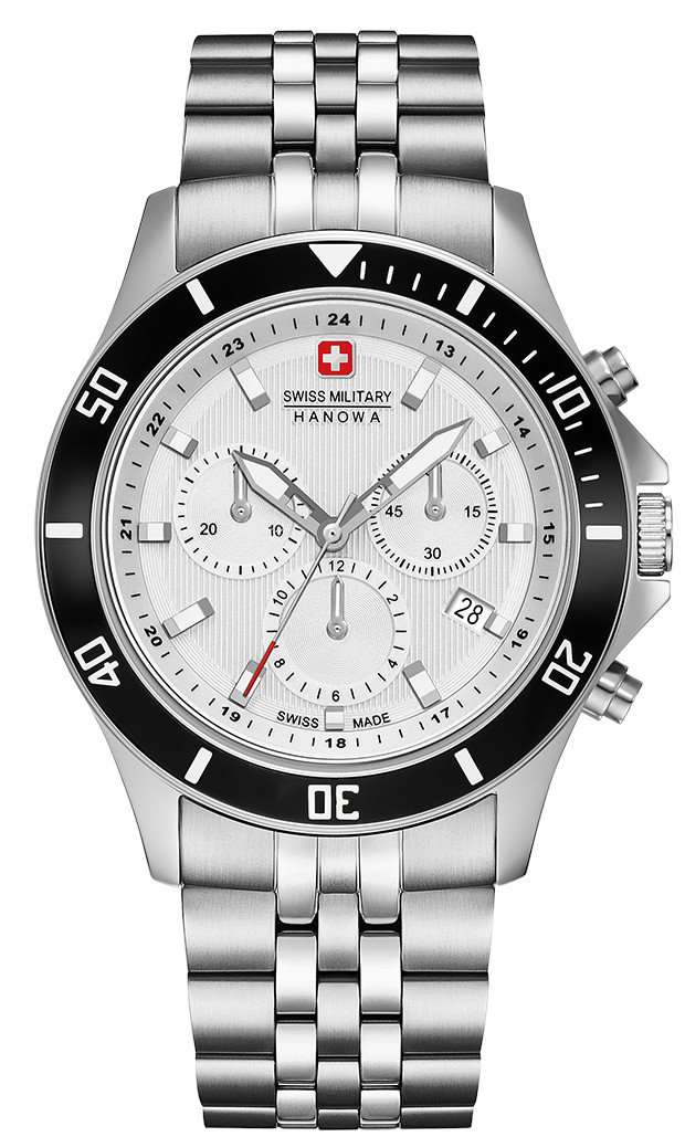Swiss Military Hanowa Flagship Chrono II 6-5331.04.001 on saanut ilmeensä Hanowan Flagship-mallista, ja varustettu monipuolisilla ominaisuuksilla kuten päivyrillä ja ajanotolla. Kellossa on hopeanvärinen teräsrakenne, 20 mm leveä ranneke ja 42 mm leveä runko, jota suojaa naarmuuntumaton safiirilasi. Taulua kehystää musta kellokehä, ja kellon osoittimet on luminoidut. Sveitsissä valmistetuilla Swiss Military Hanowa -kelloilla on 3 vuoden takuu, ja ne toimitetaan valmistajan alkuperäisessä rasiassa.