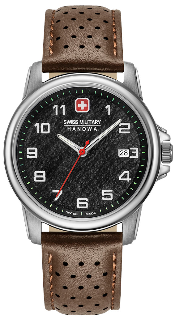 Swiss Military Hanowa Swiss Rock 6-4231.7.04.007 on rannekello hänelle, joka etsii helppopitoista ja kestävää kelloa. Swiss Rock-mallissa on hieman kapeampi 39 mm leveä runko, ja selkeälukuiset arabialaiset numerot mustalla pohjalla. Kellossa on lisäksi päivyri, ja kellotaulua suojaa erittäin kestävä naarmuuntumaton safiirilasi. Ranneke on aitoa nahkaa. Rungon leveys on 39 mm ja rannekkeen leveys 20 mm. Swiss Military Hanowa -kelloilla on 3 vuoden takuu, ja ne toimitetaan valmistajan alkuperäisessä rasiassa.