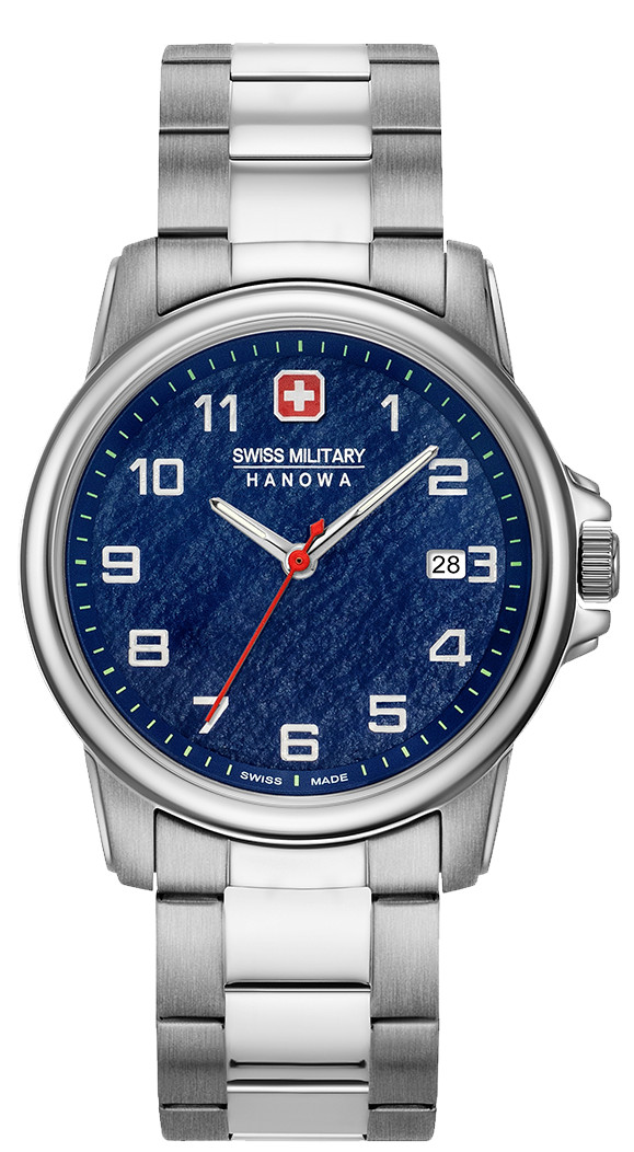 Swiss Military Hanowa Swiss Rock 6-5231.7.04.003 on rannekello hänelle, joka etsii helppopitoista ja kestävää kelloa. Swiss Rock-mallissa on hieman kapeampi 39 mm leveä hopeanvärinen teräsrunko, ja selkeälukuiset arabialaiset numerot sinisellä pohjalla. Kellossa on lisäksi päivyri, ja kellotaulua suojaa erittäin kestävä naarmuuntumaton safiirilasi. Ranneke on terästä. Rungon leveys on 39 mm ja rannekkeen leveys 20 mm. Swiss Military Hanowa -kelloilla on 3 vuoden takuu, ja ne toimitetaan valmistajan alkuperäisessä rasiassa.