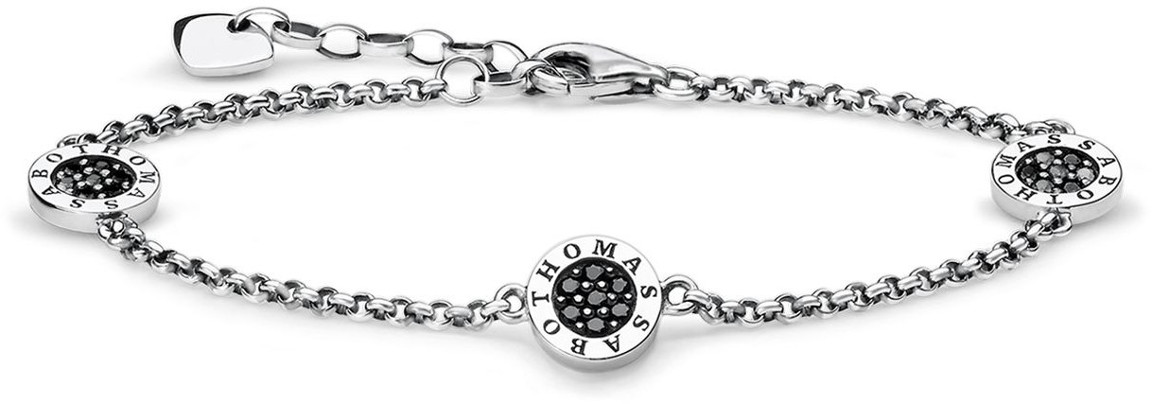 Thomas Sabo Black Classic Pavé A1829-643-11-L19v on tummanpuhuvampi versio Classic Pavé -rannekorusta. Säädettävällä ketjulla (16-19 cm) varustetussa hopeakorussa on kolme pyöreää laattaa, joissa helmeilevät mustat zirkoniat.