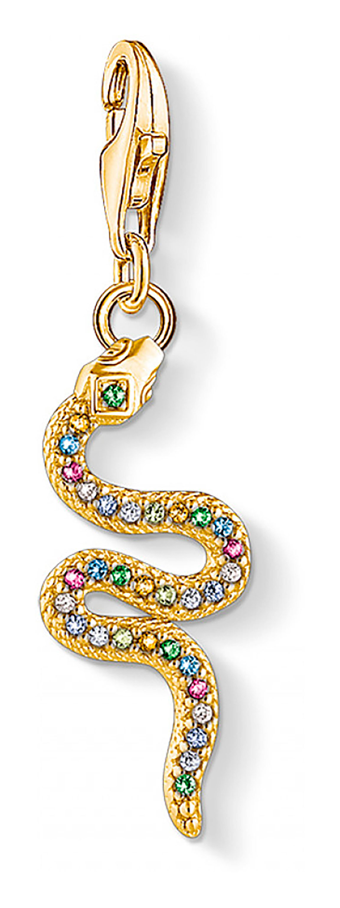 Thomas Sabo Charm Club Colourful Snake 1813-488-7 -helaa koristaa kiemurteleva käärme, jonka pinta on koristeltu usein erivärisin korukivin. Käärmekoru on valmistettu sterling-hopeasta ja päällystetty 18 karaatin kullalla. Sen korkeus on 30 mm ja leveys 8 mm. Thomas Sabo-korut toimitetaan valmistajan alkuperäisessä rasiassa.