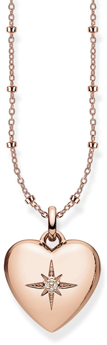 Thomas Sabo Heart Locket Pink D_KE0035-923-14-L45v -kaulakoru kunnioittaa hetkiä lähimmäisten kanssa. Vintage-tyylin korussa esiin nousevat neljä valkoista timanttia, jotka säihkyvät medaljongin tähden keskellä. Symboloivatko ne sitten perheenjäseniä vai muita läheisiä ihmisiä, sen voi kukin itse päättää. Koru säädettävine ketjuineen (40-45 cm) on valmistettu hopeasta ja päällystetty 18 kt ruusukullalla. Medaljonki on irrotettavissa ja avattavissa, suljettuna sen leveys on n. 16 mm. Saatavilla myös pyöreänä ja hopean värisenä.