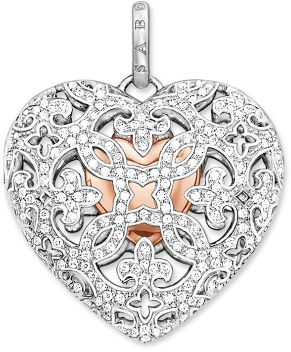 Thomas Sabo Heart Medallion Pavé PE642-416-14 on upea sydämenmutoinen hopeariipus. Avattavan riipuksen sisältä paljastuu pienempi, 18 kt ruusukullalla päällystetty sydän. Ulkokuori on koristeltu valkoisilla zirkoniakivillä. Riipuksen leveys on n. 29 mm.