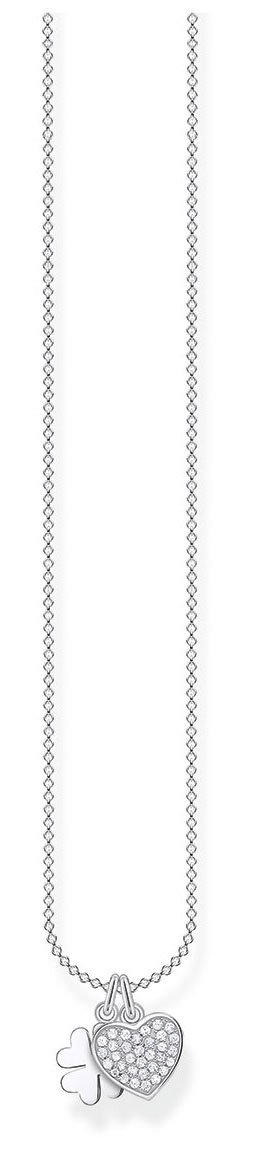 Thomas Sabo kaulakoru KE2047-051-14-L45V -kaulakorussa on riipuksena sydän ja neliapila. Sydän on päällystetty kirkkailla zirkonioilla. Riipuksen mukana tulee 45 cm pitkä ketju. Koru on valmistettu laadukkaasta sterling-hopeasta. Thomas Sabo-korut toimitetaan valmistajan alkuperäisessä rasiassa.