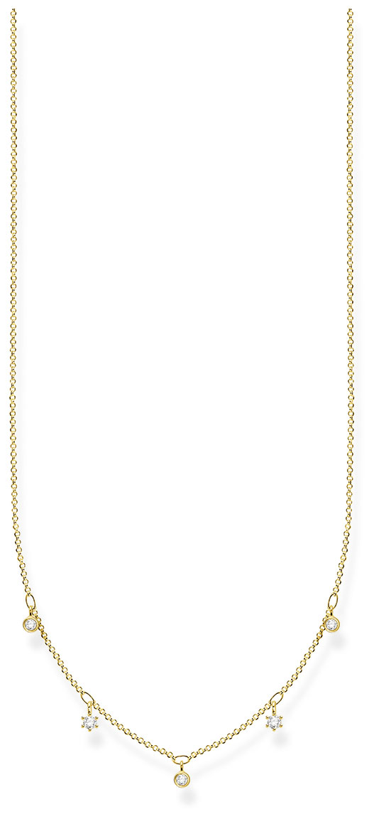 Thomas Sabo kaulakoru KE2071-414-14-L45V on upea kullattu kaulakoru, josta roikkuu viisi zirkoniaa. Ketju on säädettävissä 40 - 42,5 - 45 cm. Koru on valmistettu laadukkaasta sterling-hopeasta. Thomas Sabo-korut toimitetaan valmistajan alkuperäisessä pakkauksessa.