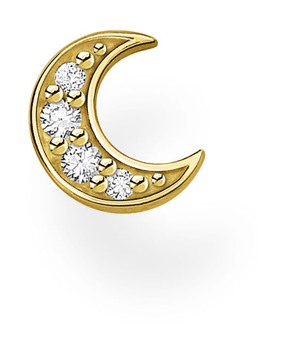 Thomas Sabo korvakoru H2133-414-14 on yksittäinen tappikiinnitteinen korvakoru, jossa on kullattu kuunsirppi, joka on koristeltu kirkkailla zirkonioilla. Koru on valmistettu laadukkaasta sterling-hopeasta. Thomas Sabo-korut toimitetaan valmistajan alkuperäisessä pakkauksessa.