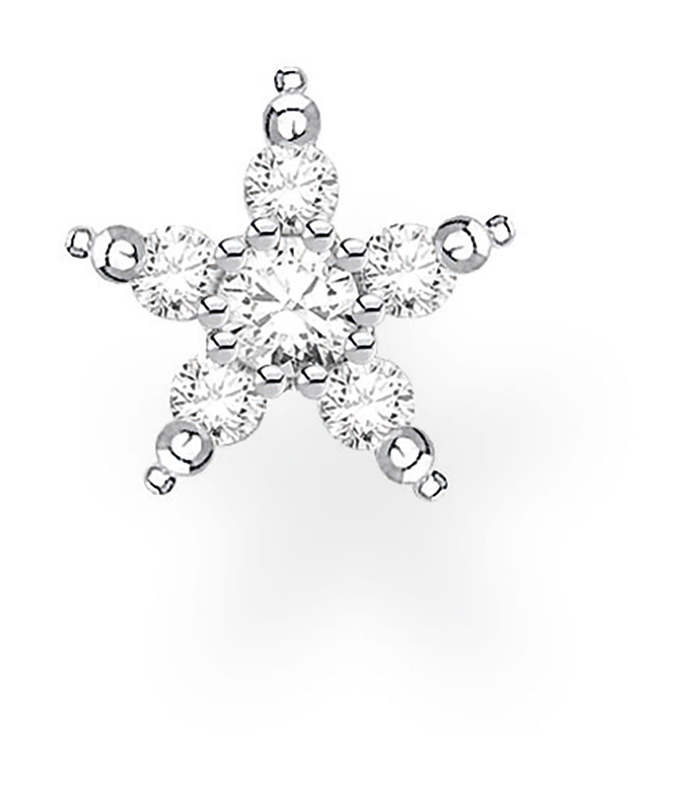 Thomas Sabo korvakoru H2134-051-14 on yksittäinen tappikiinnitteinen korvakoru, jossa on zirkonioilla koristeltu tähti. Koru on valmistettu laadukkaasta sterling-hopeasta. Thomas Sabo-korut toimitetaan valmistajan alkuperäisessä pakkauksessa.