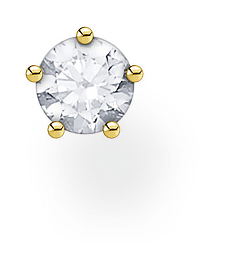 Thomas Sabo korvakoru H2135-414-14 on yksittäinen tappikiinnitteinen kullattu korvakoru, jossa on halkaisijaltaan 3 mm kirkas zirkonia. Koru on valmistettu laadukkaasta sterling-hopeasta. Thomas Sabo-korut toimitetaan valmistajan alkuperäisessä pakkauksessa.