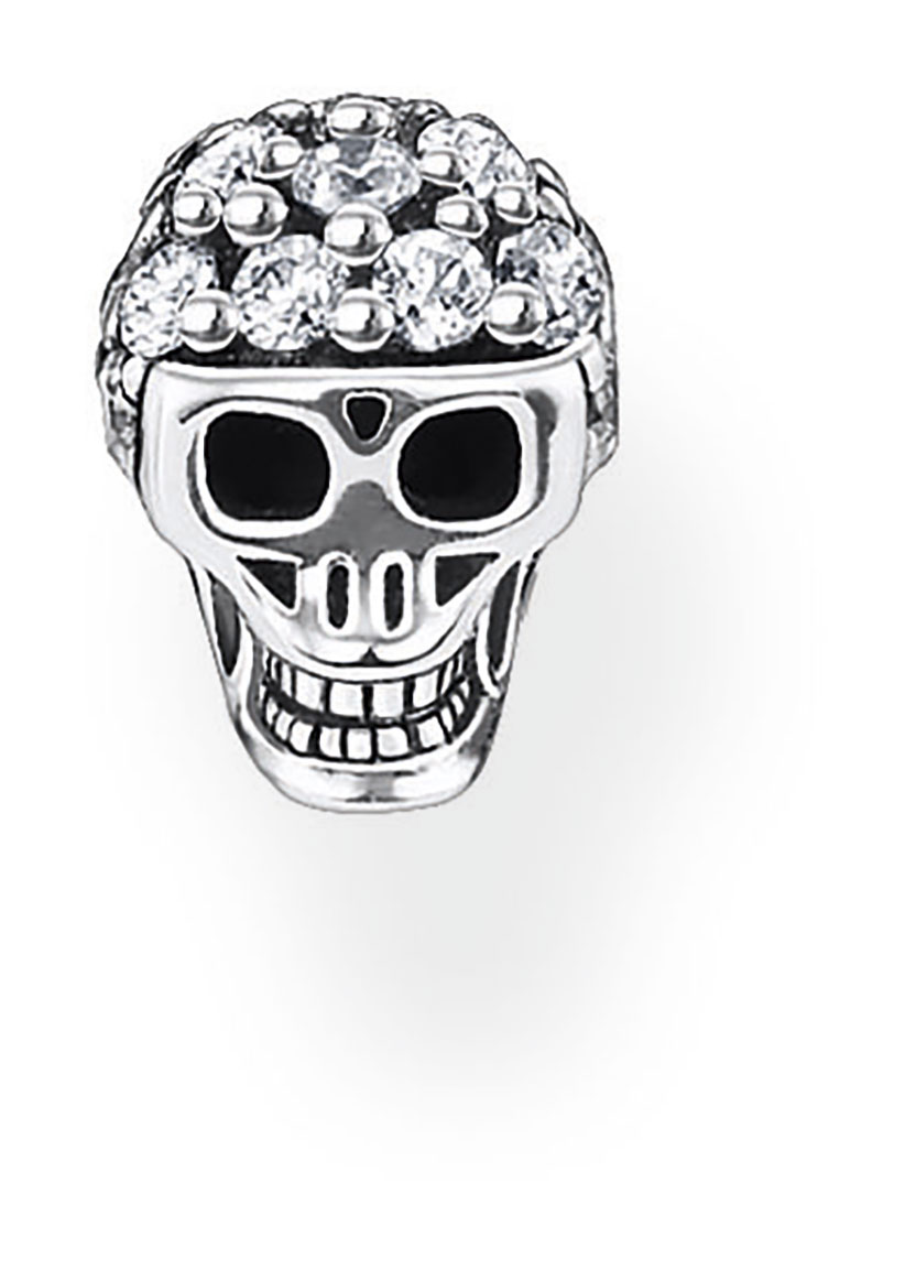 Thomas Sabo korvakoru H2146-643-14 on yksittäinen tappikiinnitteinen korvakoru, jossa on pieni pääkallo. Pääkallo on päällystetty kirkkailla zirkonioilla ja osin maalattu mustalla emalimaalilla. Koru on valmistettu laadukkaasta sterling-hopeasta. Thomas Sabo-korut toimitetaan valmistajan alkuperäisessä pakkauksessa.
