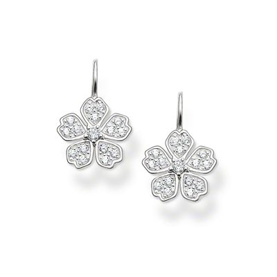 Hopeasta valmistetut Thomas Sabo H1801-051-14 kukka korvakorut. Korvakoruissa on koukkukiinnitys.  Koru toimitetaan valmistajan alkuperäisessä lahjarasiassa.