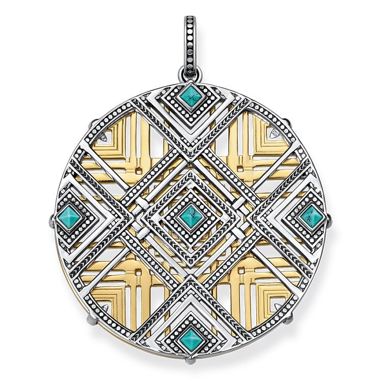 Thomas Sabo PE745-354-7 riipuksessa on käytetty materiaalina laadukasta hopeaa ja takaosio on päällystetty 18 karaatin keltakullalla. Turkoosit korukivet viimeistelevät tämän kauniis riipuksen. Riipuksen halkaisija on 43mm. Voit muuntaa riipuksen jokaiseen asuusi sopivaksi erilaisilla ketjuilla. Kaikki Thomas Sabo -korut toimitetaan valmistajan alkuperäisrasiassa.