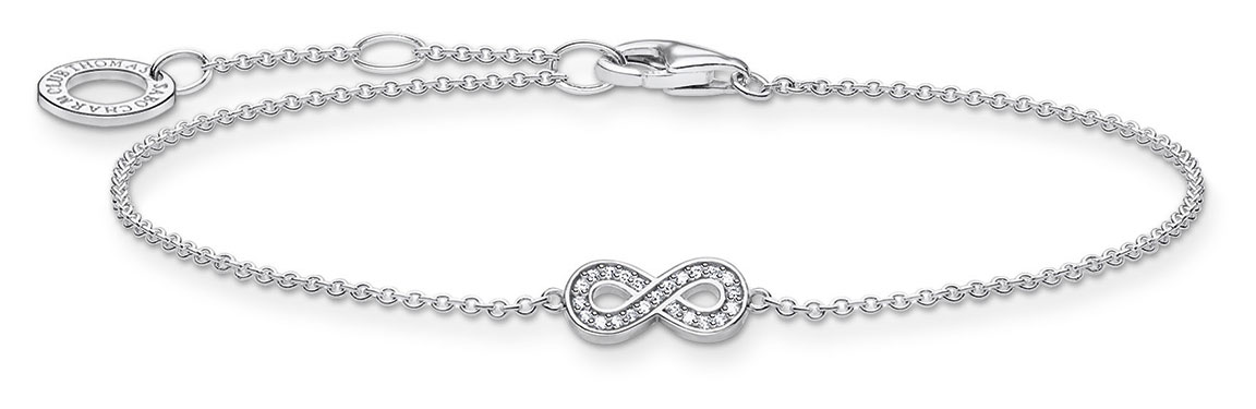 Thomas Sabo rannekoru A2003-051-14-L19V on siro rannekoru, jota koristaa zirkonioilla päällystetty äärettömyyden symboli. Rannekkeen pituus on säädettävissä 16 - 19 cm välillä. Koru on valmistettu laadukkaasta sterling-hopeasta. Thomas Sabo-korut toimitetaan valmistajan alkuperäisessä pakkauksessa.