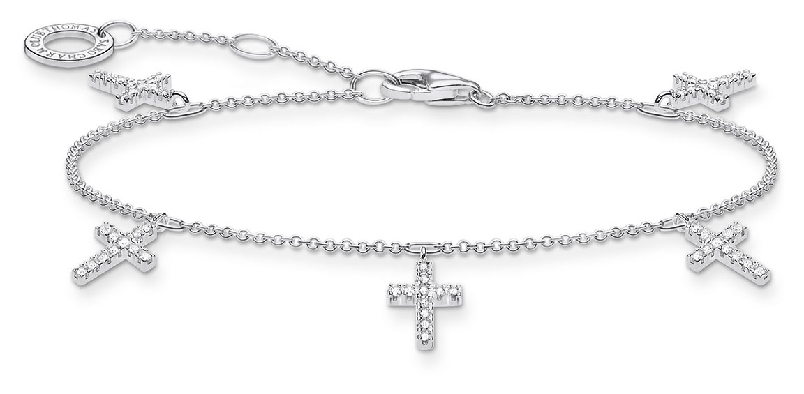 Thomas Sabo rannekoru A2004-051-14-L19V on siro rannekoru, josta roikkuu zirkonioilla päällystettyjä ristejä. Rannekkeen pituus on säädettävissä 16 - 19 cm välillä. Koru on valmistettu laadukkaasta sterling-hopeasta. Thomas Sabo-korut toimitetaan valmistajan alkuperäisessä rasiassa.