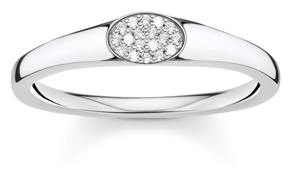 Thomas Sabo sormus TR2315-051-14-54 on siro kantasormus, jossa on istutettuna pieniä zirkonioita. Sormus on valmistettu laadukkaasta sterling-hopeasta. 54 koon sormus on 17,20 mm. Thomas Sabo-korut toimitetaan valmistajan alkuperäisessä pakkauksessa.