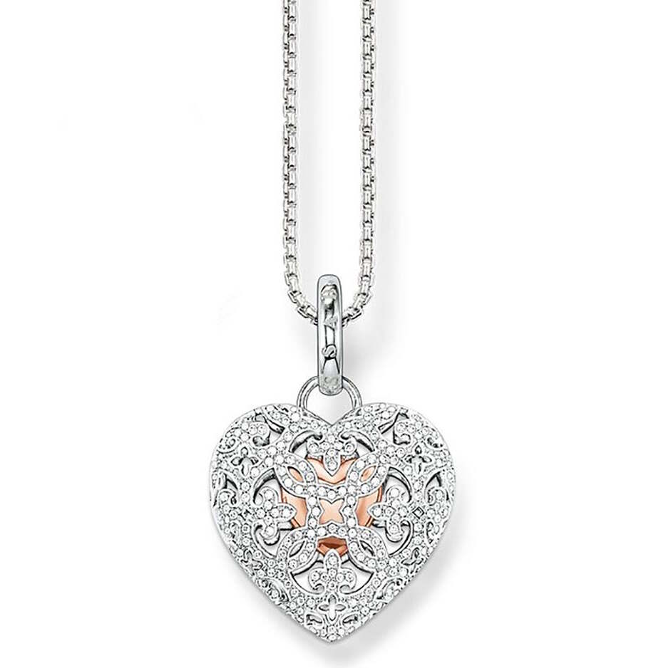 Thomas Sabo sydän+ketju setti SET1010-416-14 on loistava valinta lahjaksi. Settiin kuuluu Thomas Sabon PE707-416-14 sydän riipus, joka on valmistettu hopeasta. Sydämmen toiselle puolelle on istutettu suuri määrä synteettisiä zirconioita ja ne tekevät korusta todella tyylikkään näköisen. Riipuksen halkaisija on 19mm. Riipuksessa on punakullan värinen sydän hopeisen sydämmen sisällä ja riipus myös avautuu kuin medaljonki. Mukana setissä myös Thomas Sabon hopeinen 42cm pitkä ketju (KE1106-001-12), joka sopii loistavasti yhteen sydämmen kanssa.