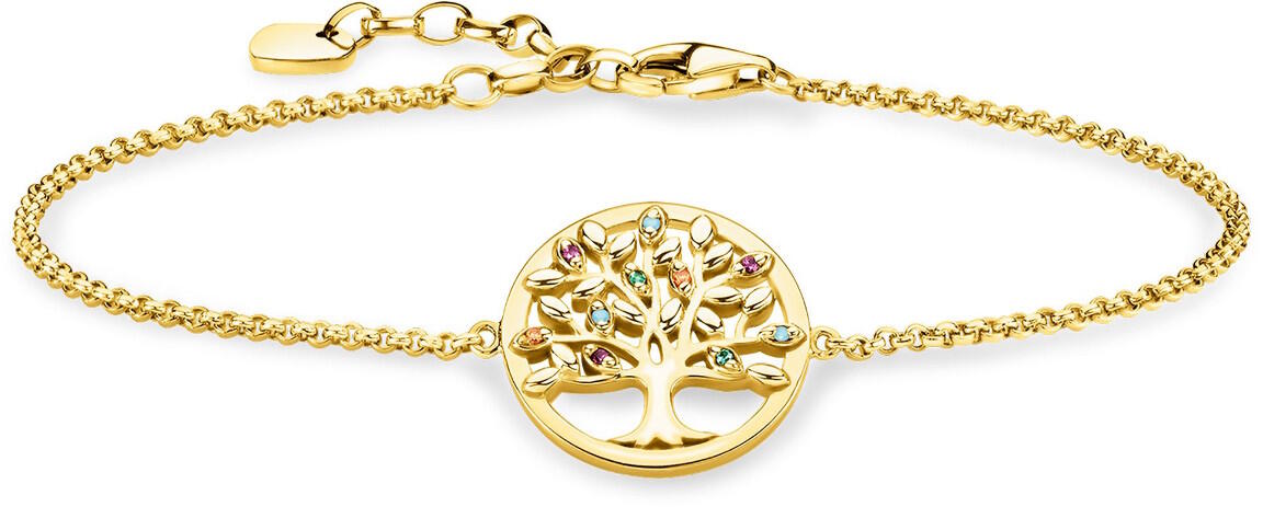 Löydä sisältäsi voima ja tasapaino tämän Thomas Sabo Tree of Love A1868-488-7 -rannekorun avulla. Trooppisin sävyin koristeltu rakkauden puu on halkaisijaltaan 17 mm. Koru on valmistettu kullatusta sterling-hopeasta ja sen pituutta voi säädellä helposti oman maun mukaan. Kivet puun oksilla ovat zirkonioita, keraamista lasia ja synteettisiä korundeja. Toimitus valmistajan alkuperäisessä pakkauksessa.