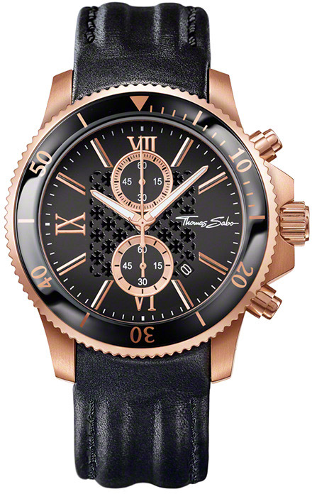 Tyylikäs miesten Thomas Sabo WA0189 rannekello. Rungon leveys 43mm ja rannekkeen 20mm. Runko on ruostumatonta terästä ja ranneke nahkaa. Kellossa on myös päivyri ja ajanotto. Thomas Sabo kelloille myönnetään 2 vuoden takuu ja toimitetaan valmistajan alkuperäisessä rasiassa.