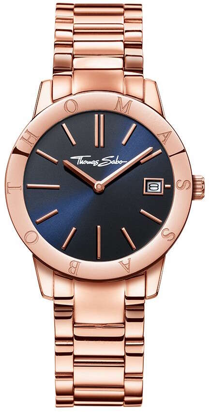 Naisten Thomas Sabo WA0215 rannekellon tummansininen kellotaulu sopii mainiosti yhteen punakullan värisen rungon ja rannekkeen kanssa. Kellossa on kovetettu ja heijastamaton mineraalilasi, jossa on naarmuuntumaton safiirilasipinnoite. Runko ja ranneke ovat valmistettu ruostumattomasta teräksestä. Rungon leveys on 33 mm ja paksuus 10 mm. Rannekkeen leveys on 16 mm. Kellossa on Japanilainen MIYOTA 1M15/GM15 koneisto. Laadukkaille Thomas Sabo rannekelloille myönnetään kahden vuoden takuu ja tuote toimitetaan valmistajan alkuperäisessä rasiassa.