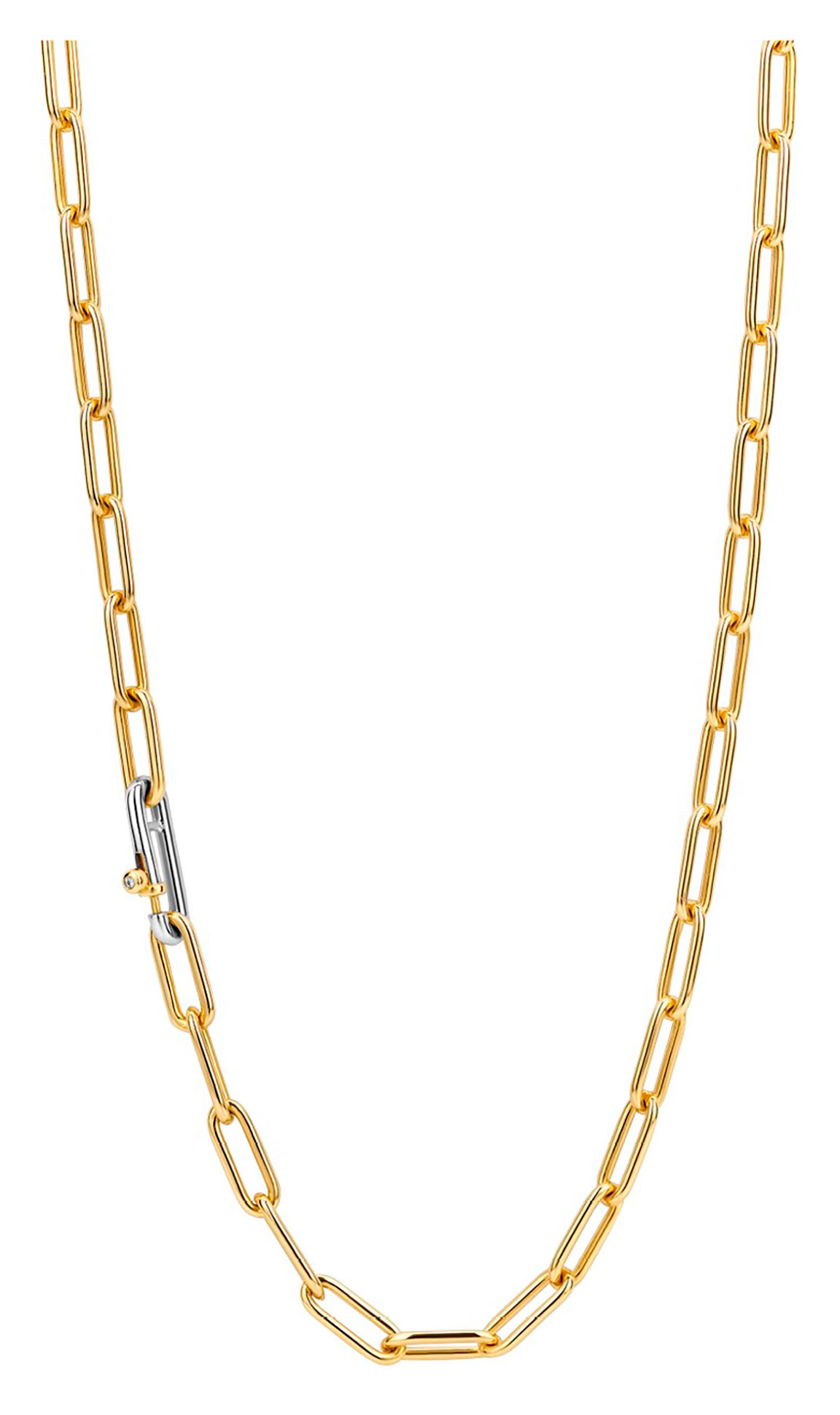TI SENTO 3947SY/48 -kaulakoru on valmistettu rodium-pinnoitetusta sterling-hopeasta. Rodium-pinnoite antaa kaulakorulle sekä lisäkiiltoa että kestävyyttä. Kaulakorussa on 18 karaatin kultaisella kerroksella ja ketjumuotoilulla. Kaulakorun koko on 48 cm. TI SENTO -korut toimitetaan valmistajan alkuperäisessä rasiassa, ja niillä on 2 vuoden takuu, joka kattaa valmistus- ja materiaalivirheet.