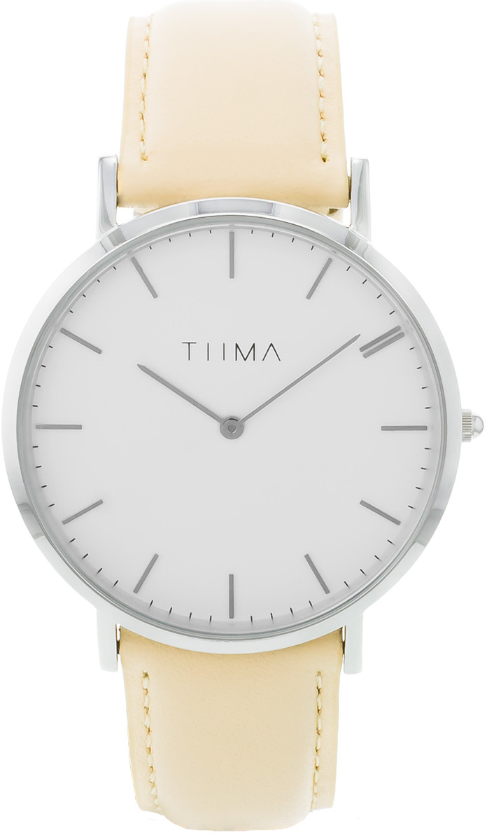Olit sitten menossa ulos tai lämmittelemässä takkatulen ääressä – Tiima Siljan Nude on täydellinen kello sinulle. Sen suomalainen suunnittelu korostaa skandinaavisia piirteitä ja yksinkertaista designia. Kellon runko on valmistettu hopean värisestä ruostumattomasta teräksestä ja beigen värinen ranneke on aitoa nahkaa. Kellon rungon leveys on 40 mm ja paksuus 7,1 mm. Rannekkeen leveys kiinnityskohdasta on 20 mm. Tiima -rannekelloille myönnetään 2 vuoden takuu ja ne toimitetaan valmistajan alkuperäisessä pakkauksessa. Voimme kaivertaa veloituksetta kellon takakanteen esimerkiksi nimikirjaimet ja päivämäärän (maksimissaan 20 merkkiä). Valitse ensin kaiverrus ja kaiverruksessa käytettävä tekstityyli ja kirjoita kaiverrettavat tiedot "kaiverrettava teksti" -kenttään. Huom! Kaiverretuilla tuotteilla ei ole palautusoikeutta!