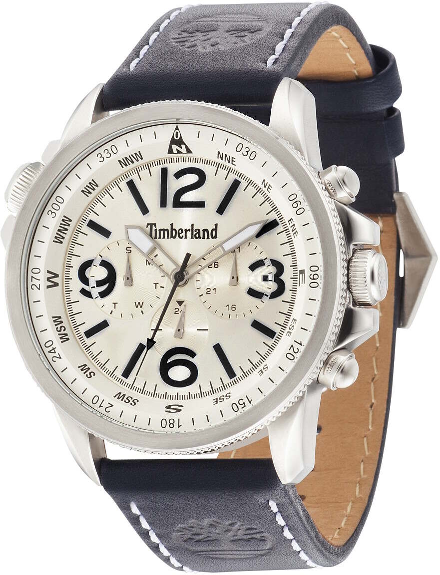 Timberland TBL13910JS/07A Campton kellossa on hopeanvärinen kellotaulu ja tummansininen nahkaranneke. Ominaisuuksina päivyri sekä viikonpäivänäyttö. Rungon leveys on 46 mm ja paksuus 12 mm. Aidon nahkarannekkeen leveys kiinnityskohdasta on 24 mm. Laadukkaille Timberland kelloille myönnetään kahden vuoden takuu ja tuote toimitetaan valmistajan alkuperäisessä rasiassa.