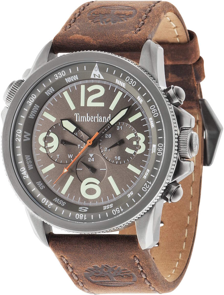 Timberland TBL13910JSU/61 Campton -kellossa on harmaa kellotaulu ja tummanruskea nahkaranneke. Ominaisuuksina päivyri sekä viikonpäivänäyttö. Rungon leveys on 46 mm ja paksuus 12 mm. Nahkarannekkeen leveys kiinnityskohdasta on 24 mm. Laadukkaille Timberland kelloille myönnetään kahden vuoden takuu ja tuote toimitetaan valmistajan alkuperäisessä rasiassa.