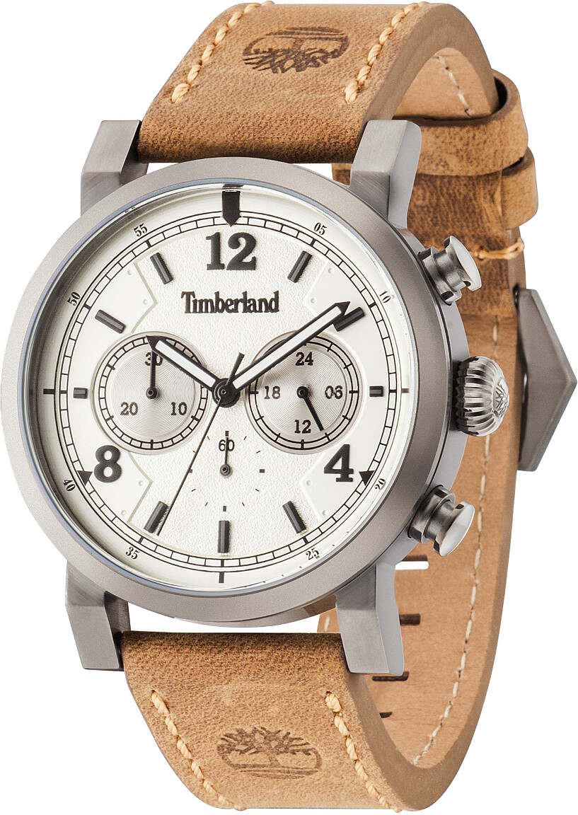 Timberland TBL14811JSU/07 Templeton kellossa on valkoinen kellotaulu, vaaleanruskea nahkaranneke sekä harmaa runko. Pyöreä nuppi luo kelloon persoonallisen ulkonäön. Ominaisuutena ajanotto. Rungon leveys on 43 mm ja paksuus 11 mm. Aidon nahkarannekkeen leveys kiinnityskohdasta on 22 mm. Laadukkaille Timberland kelloille myönnetään kahden vuoden takuu ja tuote toimitetaan valmistajan alkuperäisessä rasiassa.