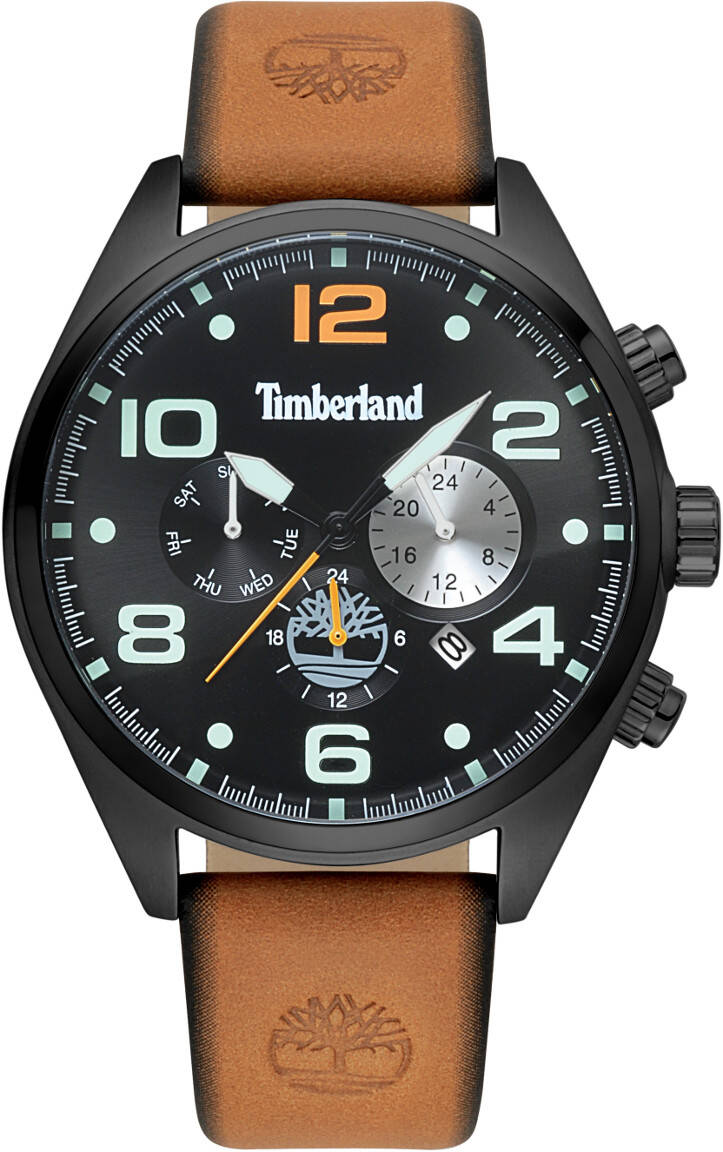 Timberland Whitman TBL.15477JSB/02 erottuu ranteestasi kauas, ja sen maine kantaa vieläkin kauemmas. Kirkkaasti luminoituvat viisarit ja indeksit ovat kookkaassa kellotaulussa kerrassaan komea näky. Kellon runko on halkaisijaltaan 46 mm ja valmistettu PVD-pinnoitetusta teräksestä. 22 mm ranneke puolestaan on aitoa nahkaa. Viisareita tässä multifunction-mallissa liikuttaa luotettava japanilainen Miyota-koneisto. Kellotaulusta voitkin lukea 12 h ajan lisäksi myös 24 h ajan, viikonpäivän sekä päivämäärän.