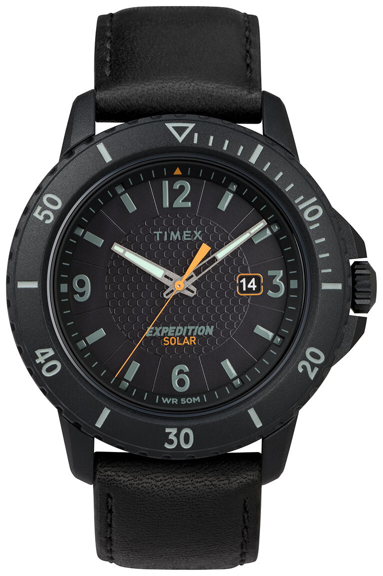Timex Gallatin Solar TW4B14700 -kello on tyylikäs miesten rannekello. Sen musta 45 mm leveä runko on valmistettu hartsista. Timex TW4B14700 -rannekellossa on mukava nahkaranneke, jonka leveys on kiinnityskohdasta 22 mm. Mustaa kellotaulua suojaa akryylilasi. Kellossa on käytetty Solar-teknologiaa, jonka avulla kello latautuu jopa sisätilavalaistuksessa. Kellossa on myös päivyri kello kolmen kohdalla. Kello kuuluu 50 m -vesitiiviysluokkaan eli se on rajoitetusti vesitiivis. Timex-rannekelloilla on kahden vuoden takuu, ja ne toimitetaan valmistajan alkuperäisessä rasiassa.