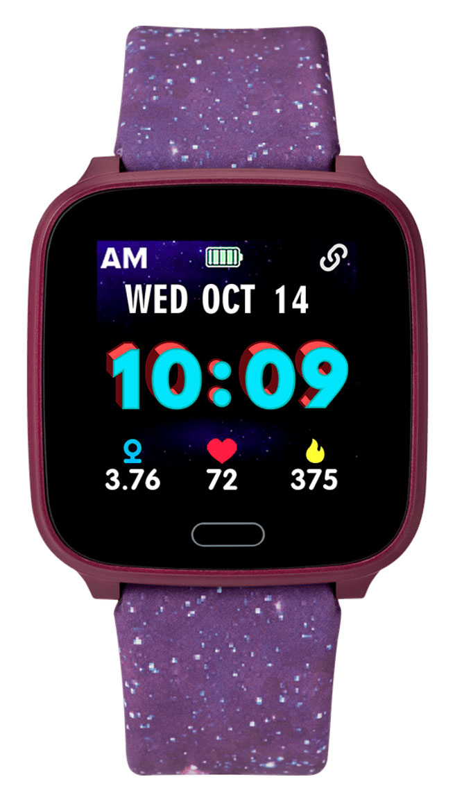 Timex Kids Active iConnect Purple Galaxy älykello TW5M40800 on älykello lapsille, jonka avulla voidaan opetella terveitä elämäntapoja! Kellosta löytyy jopa koripallopeli, joka on varmasti lapsen mieleen. Suorakulmion muotoinen AMOLED-näyttö on selkeä lukuinen ja siihen voi valita itselleen mieluisan kellotaulun. iConnect Kids Active -kellon ominaisuuksia ovat optinen sykkeenmittaus, älypuhelimen ilmoitukset sekä aktiivisuuden- ja unen seuranta. Urheilutilalla voi tallentaa treenejä ja aktiivisuuden seuranta ominaisuudella näkee päivän askeleet, poltetut kalorit ja kuljetun matkan. Unen seurannalla voi tarkastella unitietoja ja saada uutta tietoa nukkumistottumuksista. Yhdistä kello älypuhelimeen ja ota käyttöön älykkäät ilmoitukset, jolloin kello ilmoittaa uusista sähköposteista, WhatsApp viesteistä, Facebook ilmoituksista ja tekstiviesteistä. Voit etsiä kellon avulla myös puhelimesi ja hallita musiikkia. Yhdistäminen onnistuu iConnect-sovelluksella, joka on yhteensopiva iOS 10.0 tai uudemman ja Android 6.0 tai uudemman käyttöjärjestelmän kanssa. Älykello on kevyt ja mukavantuntuinen ranteessa. Violetti runko on 37 mm leveä ja 11 mm paksu. Avaruuskuvioinen ranneke on kiinnityskohdasta 20 mm leveä ja se on valmistettu silikonista. Kello on roiskevesitiivis.