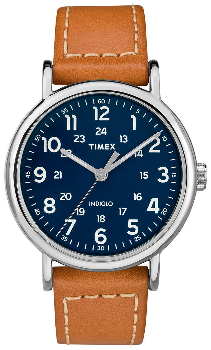 Timex Weekender TW2R42500 -kello on tyylikäs miesten rannekello. Sen hopea 40 mm leveä runko on valmistettu ruostumattomasta teräksestä. Timex TW2R42500 -rannekellossa on mukavan tuntuinen nahkaranneke, jonka leveys on kiinnityskohdasta 20 mm. Ominaisuuksina mm. 24 tunnin näyttö ja kirkas indiglo-jälkihohto. Sinistä kellotaulua suojaa mineraalilasi. Kello kuuluu 30 m -vesitiiviysluokkaan eli se on roiskevesitiivis. Timex-rannekelloilla on kahden vuoden takuu, ja ne toimitetaan valmistajan alkuperäisessä rasiassa.