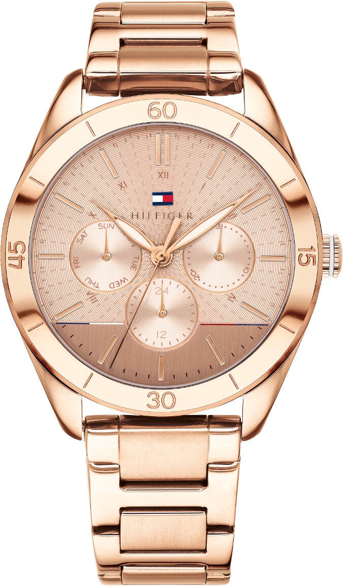 Tommy Hilfiger 1781884 Gracie on uusinta painos huippusuositusta Hilfigerin Gracie sarjasta. Tämä malli on kokonaan punakullan värinen. Ominaisuuksina päivyri, viikonpäivänäyttö sekä 24h-näyttö. Kellon rungon leveys on 40mm ja paksuus 9mm. Rannekkeen leveys kiinnityskohdassa on 20mm. Tommy Hilfiger -kelloille myönnetään 2 vuoden takuu ja ne toimitetaan valmistajan alkuperäisessä rasiassa.