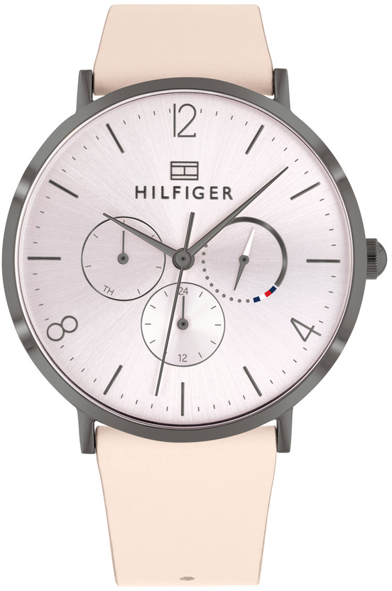 Tommy Hilfiger 1782034 Jenna on astetta kookkaampi naisten kello, jossa jokainen huoliteltu yksityiskohta pääsee entistä upeammin esille. 20 mm leveä ranneke on valmistettu aidosta nahasta ja sen kylkipuolet ovat väriltään tummanharmaat. Samaan sävyyn värjätty 40 mm runko on materiaaliltaan ruostumatonta terästä. Sunray-kellotaulusta löytyvät lisäksi 24 h näyttö ja viikonpäivän osoitin.