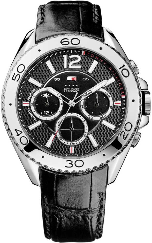 Miesten tyylikäs Tommy Hilfiger 1791029 Grant rannekello. Rungon leveys on 47mm ja rannekkeen 20mm. Kellon runko on terästä ja ranneke nahkaa. Runko on hopean/harmaan värinen ja ranneke musta. Kellossa on myös multifuntion ominaisuus ja päivyri. Tommy Hilfiger kelloille myönnetään 2 vuoden takuu ja ne toimitetaan valmistajan alkuperäisessä rasiassa.