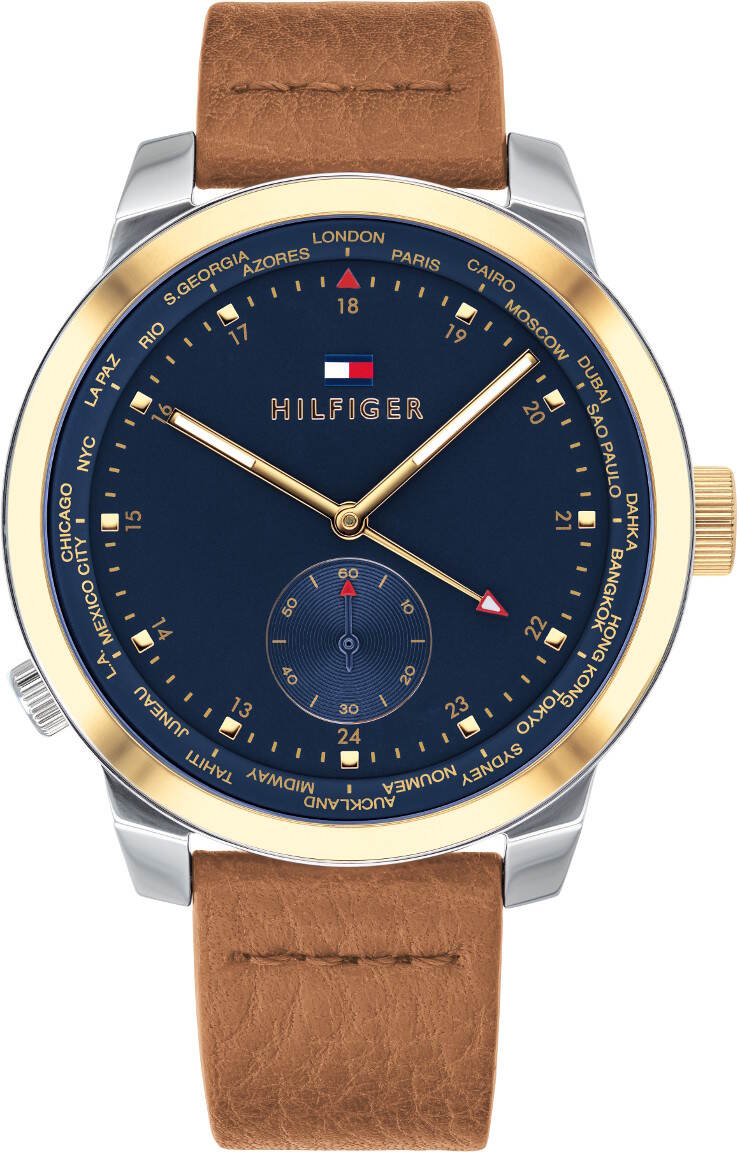 Tommy Hilfiger 1791553 Denim -kellossa on sininen kellotaulu, kullanvärinen kellotaulun kehä ja ruskea nahkaranneke. Kellossa on sekuntiosoitin kello kuudessa ja nuolikärkinen kaksoisaikaviisari. Kaksoisaika asetetaan kiertämällä kellon kehää kello kahdeksassa olevasta nupista ja asettamalla kehällä oleva kaupunkikoodi vastaamaan haluttua aikavyöhykettä. Kello on valmistettu ruostumattomasta teräksestä ja sen rungon halkaisija on 44 mm. Rannekkeella leveyttä on kiinnityskohdasta 22 mm. Kaikille Tommy Hilfiger -kelloille myönnetään 2 vuoden takuu ja ne toimitetaan valmistajan alkuperäisessä rasiassa.
